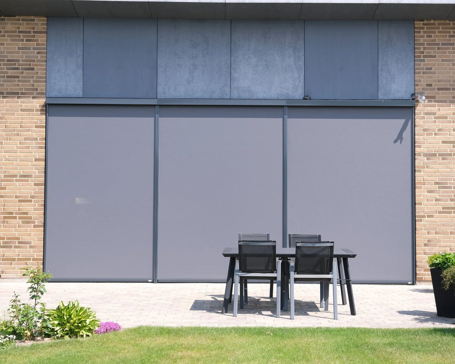 ZIP Screens er den moderne løsning til udvendig sol- og vindafskærmning. Den unikke lynlås i siderne holder dugen fuldstændigt fastspændt i skinnerne, så vinden ikke får fat – selv ved kraftige vindstød. Solens stråler stoppes, før varmen når ind gennem glasset, og du kan nyde privatliv uden at lukke lyset ude.